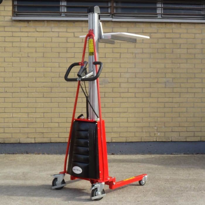 The E150 lightweight and compact lifter is easily manouverable, very versatile and easy to operate. The lifter is designed to remove back strain from all types of lifting work. It can be used to lift items from the floor to 1.5m with a battery powered powerpack. The lifter is a perfect solution for narrow aisles and confined spaces thanks to it's overall size.